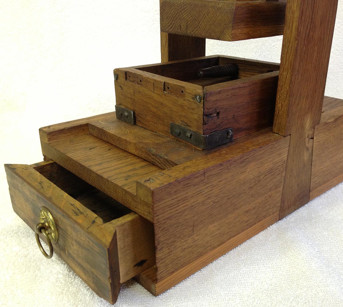 Also found under the Xmas tree this year, an addition to HM's collection of presses. This one probably a toy, made in the late 1800s? Beautifully made: dovetails & hand-carved threads. Suspect the wood is oak.