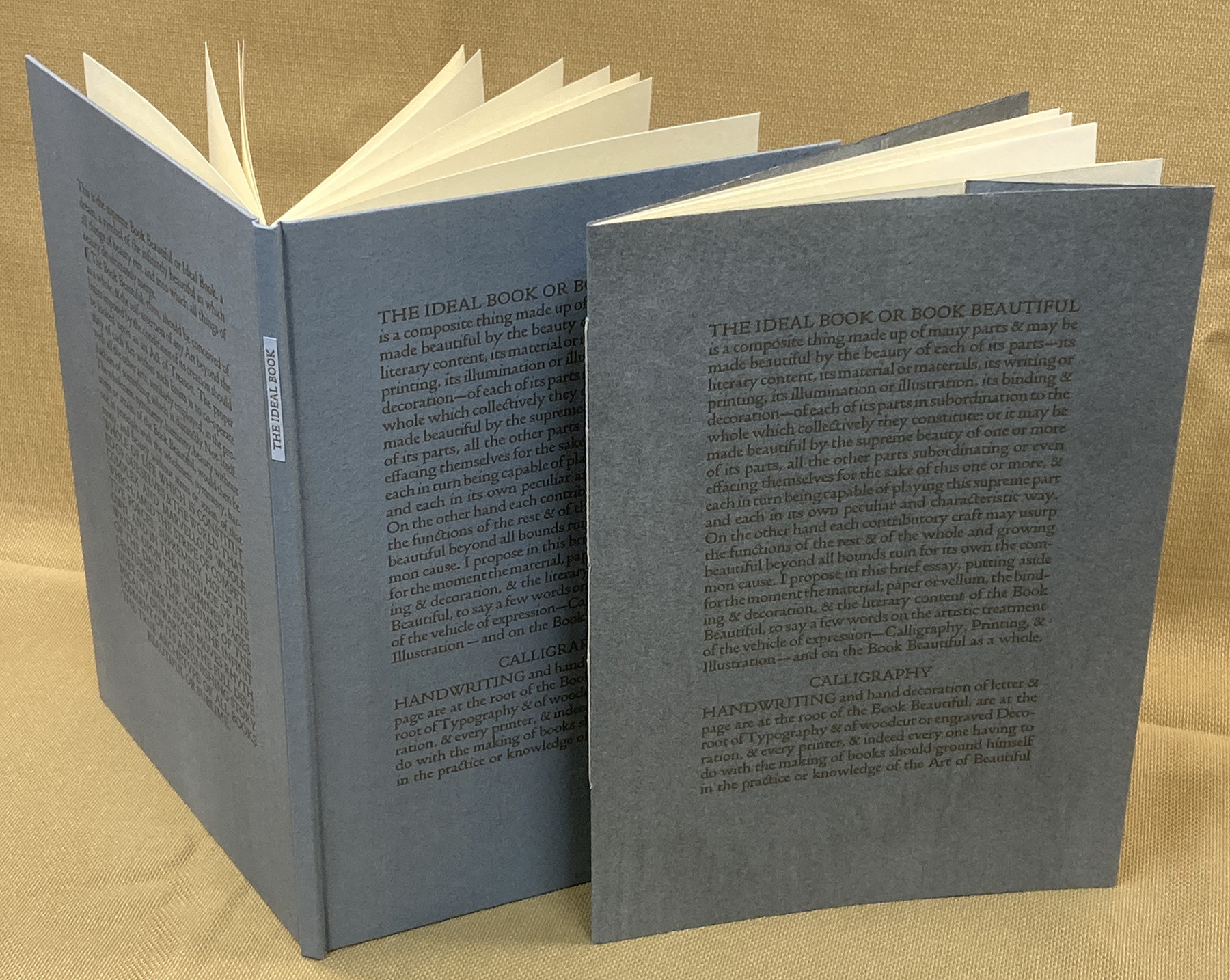 The 25 copies with the “Note...” facsimile and leaf (above) will be cased in printed blue paper over thin boards. I ended up with another 13 copies, which have been sewn into a painted handmade paper wrap (see top for both versions).